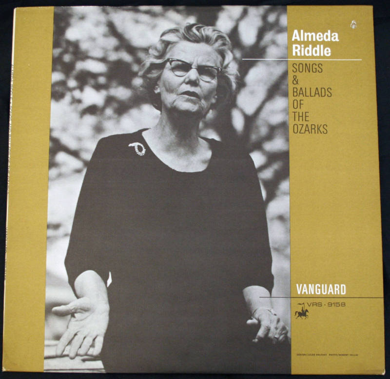 DescriptionThe title of the album is "Songs & Ballads of the Ozarks" Album cover shows a black and white photo of Riddle singing. She is wearing a black dress with a rhinestone brooch pinned on her left shoulder. Album came out in 1964 and was produced by Vanguard.