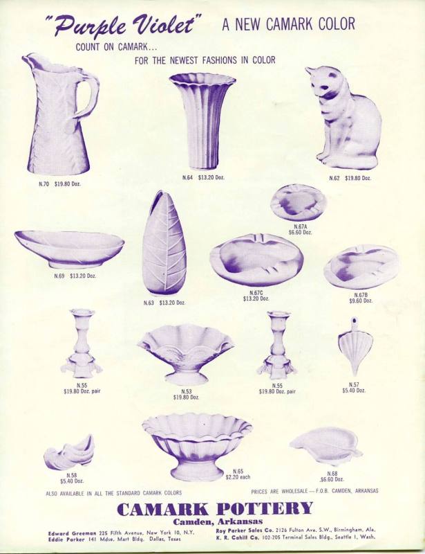 Situated in Camden, Arkansas, Camark Pottery manufactured a variety of wares between 1927 and 1969. Founded as the Camden Art ad Tile Company by Samuel J. (Jack) Carnes, it employed experienced ceramists, designers, and artists. Beginning with quality hand-thrown and cast artware, production gradually turned to strictly industrial castware in the 1930s. In the 1960s, he company's ownership changed, and by 1969, it ceased operation presumably due to economic conditions. In 1986, the company name and property were purchases by Mark and Gary Ashcraft who planned to resume business--yet to date (1990), nothing has come of it.