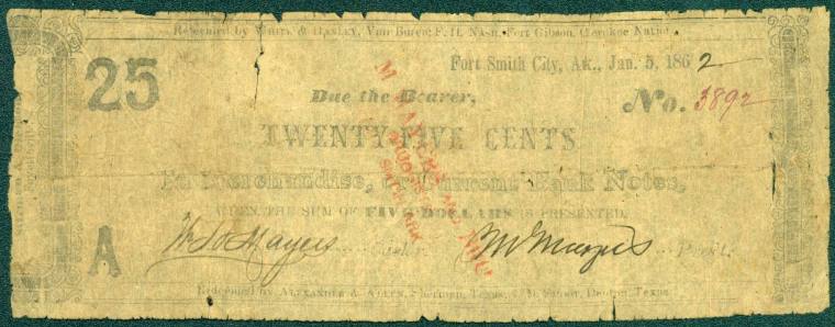 Scrip, Arkansas Confederate - 25 Cent