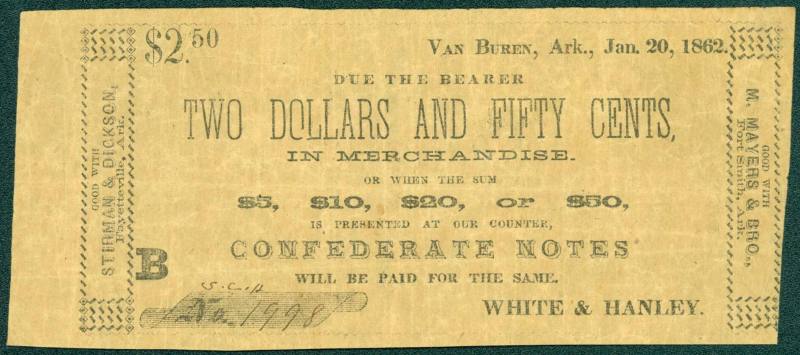 Scrip, Arkansas Confederate - $2.50 note