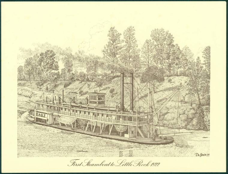 DescriptionPrint of "First Steamboat to Little Rock, 1822" by Richard DeSpain.Status