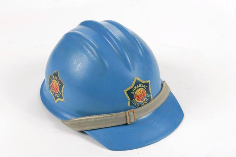 DescriptionArkansas State Police riot helmet used during the Civil Rights era.Status