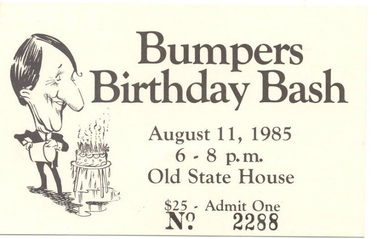 Tickets, Dale Bumpers 1985 Birthday Bash