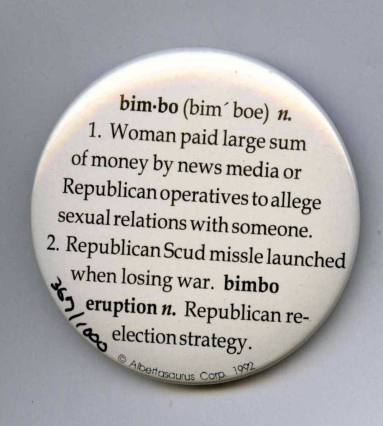 DescriptionClinton/Gore campaign button. Round white button with blue and black lettering: "Do 'A Hillary' Earn more money than your husband, the Governor of Arkansas."Status