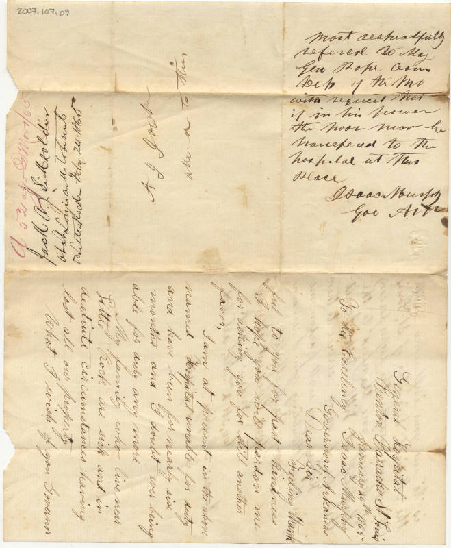 Most respectfully referred to my Gen Pope, Dept. of the MO with request that if in his power the poor man be transferred to the hospital at this place.