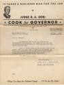 Handbill, Letter, Envelope, Articles, Campaign Material, Judge R.A. Cook