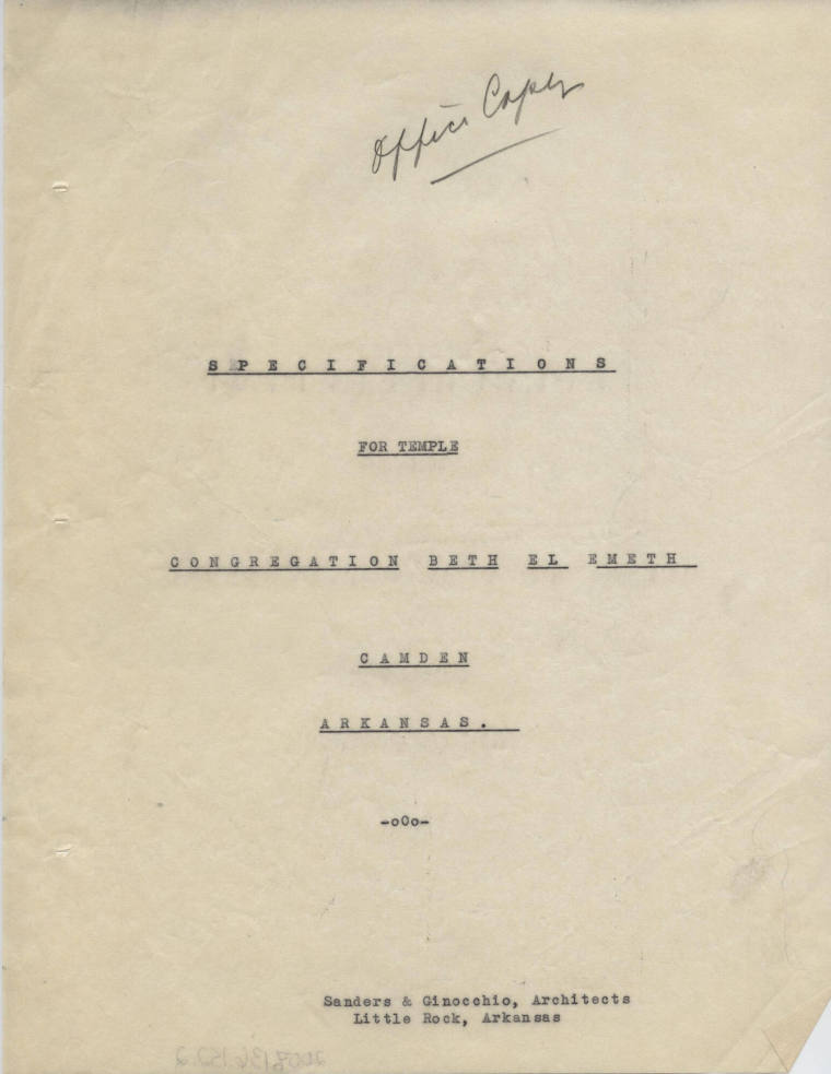 Charles Thompson Work Specifications - Beth El Emeth, Camden