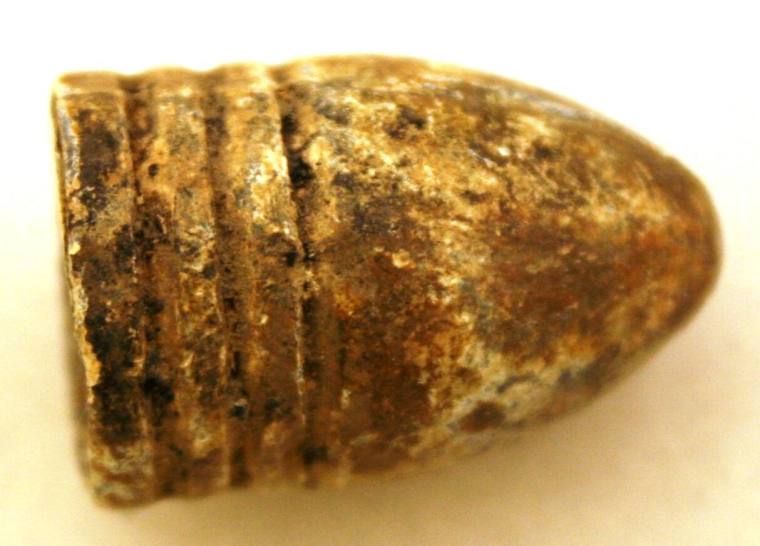 DescriptionBullet excavated at the Franklin Battlefield near Franklin, Tennessee. The .69 caliber bullet is a three-groove minie ball with a pointed-conical cavity.