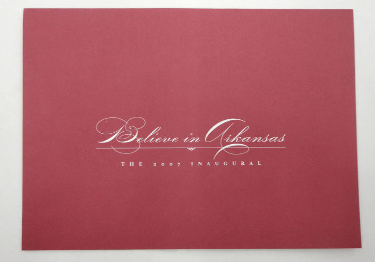 DescriptionMike Beebe's 2007 Inaugural Invitation to the Gubernatorial Staff Brunch. Cover is dark red with white text. Inside is white with dark red text. "Believe in Arkansas, The 2007 Inaugural, Gubernatorial Staff Brunch"Status