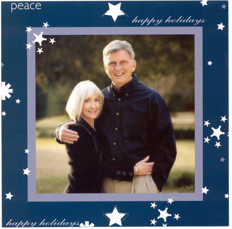 DescriptionGovernor and First Lady Beebe's 2007 Christmas Card. Border is blue with white stars. Color photograph of Mike and Ginger Beebe in the center.Status
