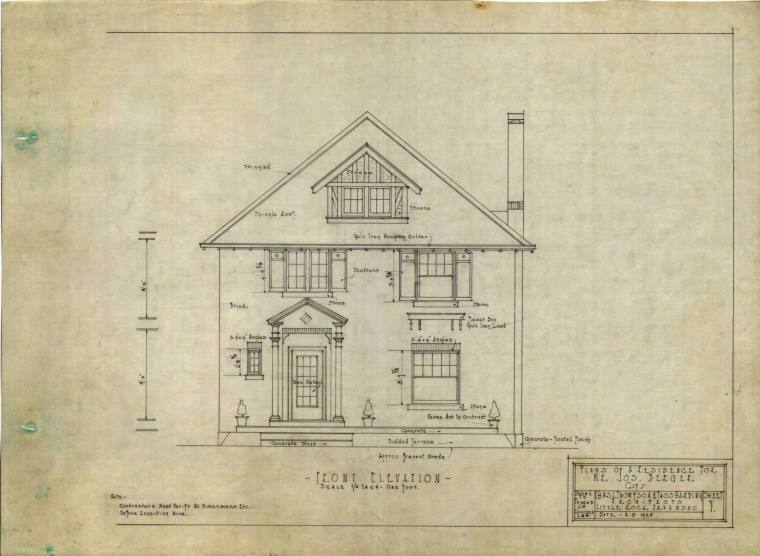 DescriptionCharles Thompson architectural drawing for Joseph Berger in Little Rock, Arkansas. Front Elevation.Status