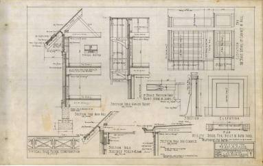 DescriptionCharles Thompson architectural drawing for Joseph Berger in Little Rock, Arkansas. Wall Section, F.S. Section thru Shutter, Details of Flower Box, and Utility Door for Built-In TubStatus