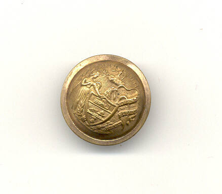 DescriptionArkansas State Seal Coat Button. Circular, convex brass button with shield with lady liberty at the left and ribbons with a Latin inscription on the right. Reverse side of button has a single loop projection. Likely worn by a Confederate officer as a button on a frock coat, significantly larger than a cuff button.