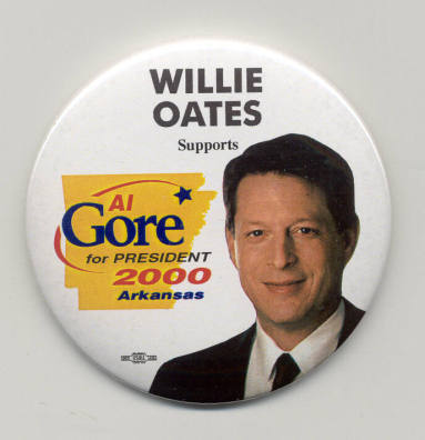 DescriptionCampaign button from Bill Clinton's 1992 Presidential campaign. The white button has photo images of Bill Clinton and Al Gore. An eagle is top center with a red white and blue banner below. "92" appears in teh center. Below the photos are gold banners with Clinton and Gore President and Vice-President.