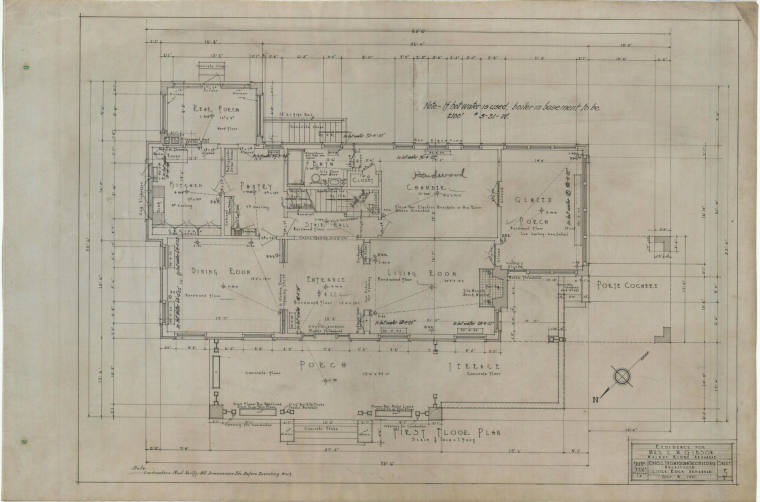 DescriptionCharles Thompson architectural drawing of the Mrs. L.M. Gibson house in Walnut Ridge, AR. First floor plan.Status