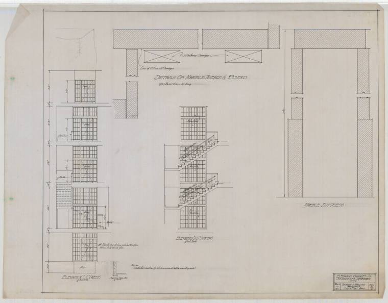 DescriptionCharles Thompson architectural drawing of the elevator system for St. Vincent's Infirmary in Little Rock, Arkansas. Sheet no. 2Status