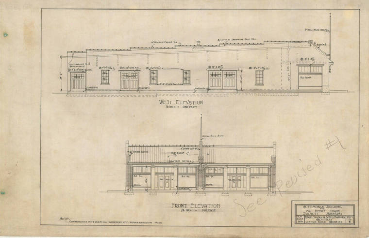 DescriptionCharles Thompson architecturald drawing for the Henry Thane Auto Bldg. in Dermott, Arkansas. Front and west elevationsStatus