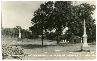 DescriptionColor postcard depicting two separate monuments at the Shiloh National Military Park in Tennessee. The monument on the left is the Arkansas Monument. The one on the right is the Second Tennessee Regiment Monument. The reverse of the postcard is blank.The Arkansas Monument was erected in 1910. Robert G. Shaver, a Confederate veteran and Arkansan, spoke at the monument's unveiling. Shaver fought in the Battle of Shiloh in 1862.