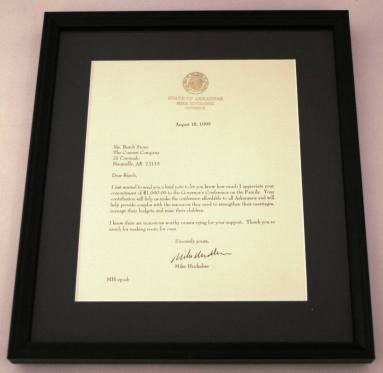 DescriptionFramed color photograph of Gov. Mike Huckabee, the Lynyrd Skynyrd band, Butch Stone. Inscribed: To Butch Stone, Thanks, My friend, for a great experience! Mike Huckabee, Governor. Black wood frame.Michael Dale Huckabee was born on August 24, 1955 in Hope, Arkansas. In 1996, Huckabee was sworn in as the forty-fourth governor of Arkansas. Huckabee was reelected in 1998. During his time as governor he led campaigns to rebuild the state highway system, pushed for Arkansas's tobacco settlement to be used for the state's health care system, and also began a push for educational reform. Huckabee and his wife currently live in Florida.