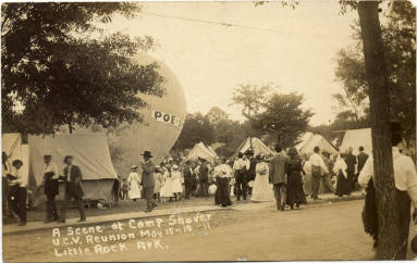 DescriptionBlack and white postcard from the 1911 U.C.V. Reunion in Little Rock. This shows the Arizona helium balloon that was featured during the reunion. Postcard is uncirculated. At the bottom in white lettering: "At Camp Shaver/U.C.V. Reunion"Status