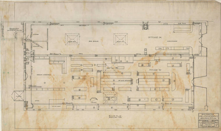 DescriptionCharles Thompson architectural drawing for the J.S. Dessent store in Arkansas City, Arkansas. Floor plan.Status