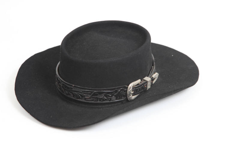 DescriptionHat worn by Arkansas native Johnny Cash in the 1971 movie "A Gunfight." The movie starred Cash and Kirk Douglas. The movie was produced by Paramount Pictures.Johnny Cash was born John R. Cash on February 26, 1932, in Kingsland, Arkansas, and raised in Dyess, Arkansas. Nicknamed “The Man in Black," Cash was a singer/songwriter, actor, and author (writing two autobiographies). He acted in both movies and television (including his own variety show, "The Johnny Cash Show"). Cash died September 12, 2003.