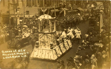 DescriptionPhotographic postcard showing "negro body servants" marching the 1911 United Confederate Veterans Reunion parade in Little Rock, Arkansas. Published by an out of state photographer, R.S. Patterson of Nashville, Tennessee. Black and white. Postcard is uncirculated.
