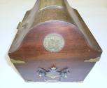 DescriptionSmall treasure chest-shaped box given to Orval Faubus by the Governor of Florida. On a small gold plaque on top of the box: "Gov. Orval E. Faubus/A Small Token of Friendship/From the People of Florida/Haydon Burns/Governor." The front latch is the Florida State Seal.Orval Eugene Faubus was born on January 7, 1910 in Madison County. Faubus married Alta Haskins in 1931, they had one son. In 1938, Faubus was elected circuit clerk and recorder of Madison County. After WWII, Faubus was rewarded with an appointment to the state highway commission and later worked in the governor’s office as an administrative assistant. In 1955, he defeated Pratt Remmel for the governorship becoming the thirty-sixth governor of Arkansas. While in office Faubus improved public education including pay increases for teachers, began an overhaul of the State Hospital for the mentally ill, built the Arkansas Children’s Colony, expanded state parks, and paved hundreds of miles of highway. He left office in 1967. Faubus died on December 14, 1994.