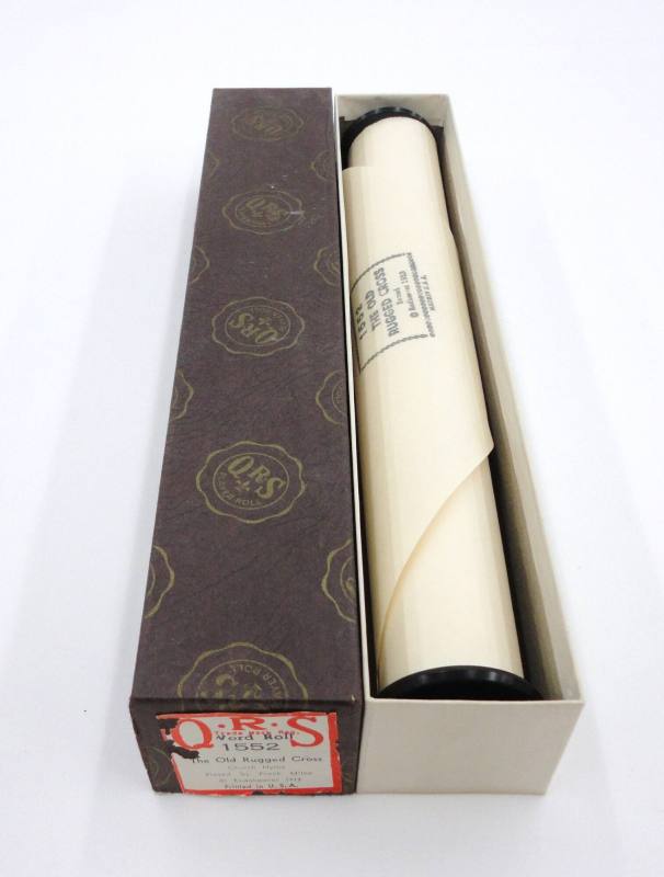 DescriptionPlayer piano roll, "The Old Rugged Cross". Goes with Faubus player piano (2011.031.01). Played by Frank Milne. Brown box with music roll. On one end of the box is a white label with black and red print.Status