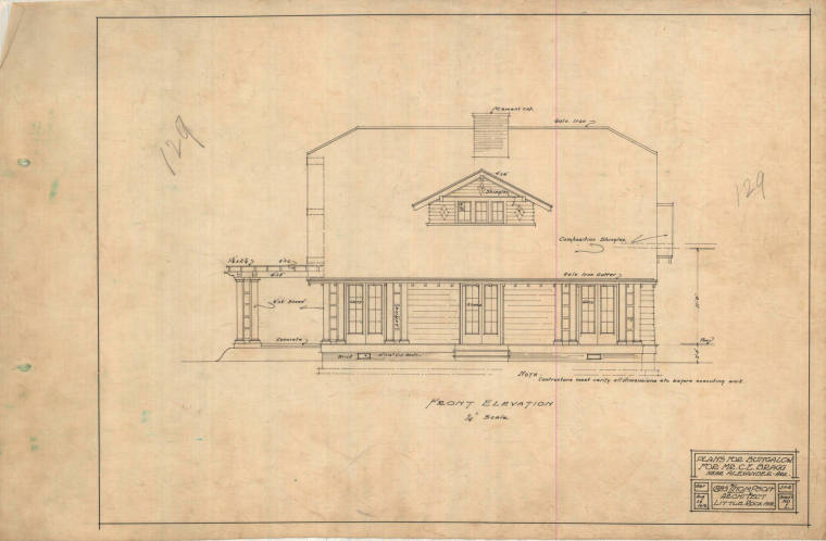 DescriptionCharles Thompson architectural drawing for C.E. Bragg in Alexander, Arkansas. Front elevation.Status