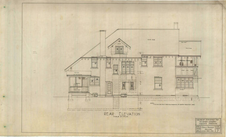 DescriptionCharles Thompson Architectural Drawing for Nathan Gregory at 312 S. 2nd St. in Augusta, Arkansas. Rear elevation.Status