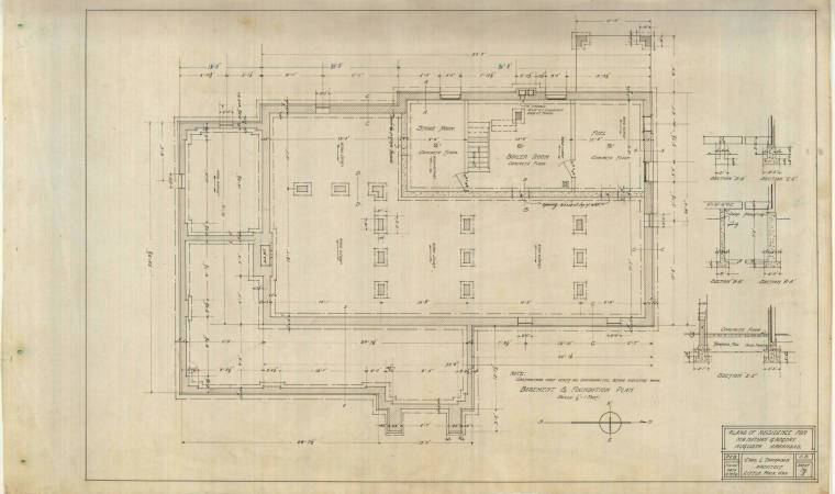 DescriptionCharles Thompson Architectural Drawing for Nathan Gregory at 312 S. 2nd St. in Augusta, Arkansas. Basement and Foundation Plan.Status