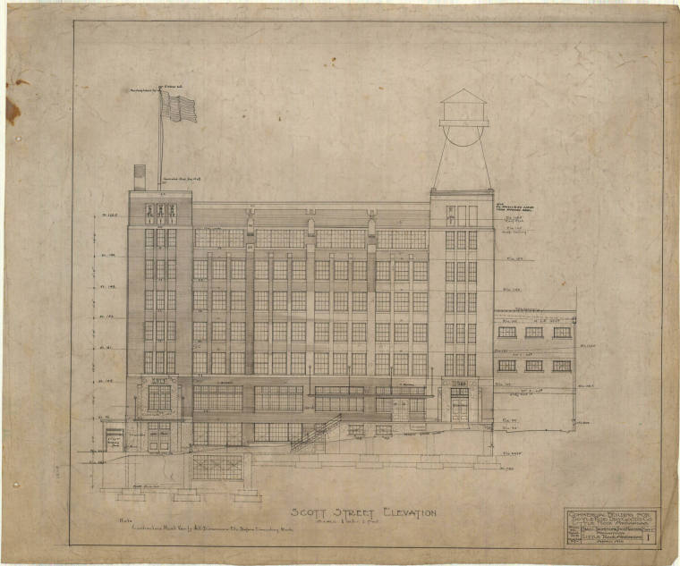 DescriptionCharles Thompson Architectural Drawing for Doyle Kidd Dry Goods in Little Rock, Arkansas. Scott St. elevation.Status