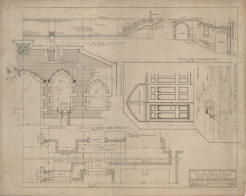 DescriptionCharles Thompson architectural drawing for Winfield Memorial M.E. Church at 1601 Louisiana in Little Rock, Arkansas. Sunday school porch, side entrance doors, etc.Status