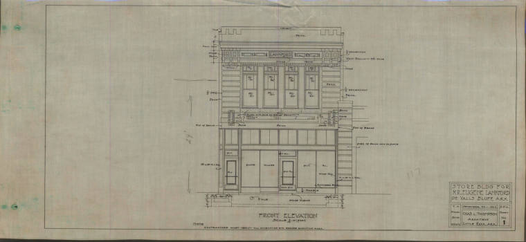 DescriptionCharles Thompson architectural drawing for Eugene Lankford on Highway 70 in DeVall's Bluff, Arkansas. Front elevation.Status