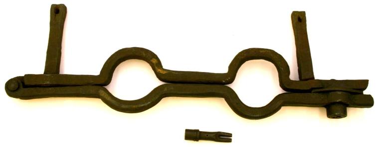 DescriptionWrought iron hinged leg bands with tamper-proof double action lock. Screwlock, double key, 3/4 inches long included. Originally mounted in wood frame.