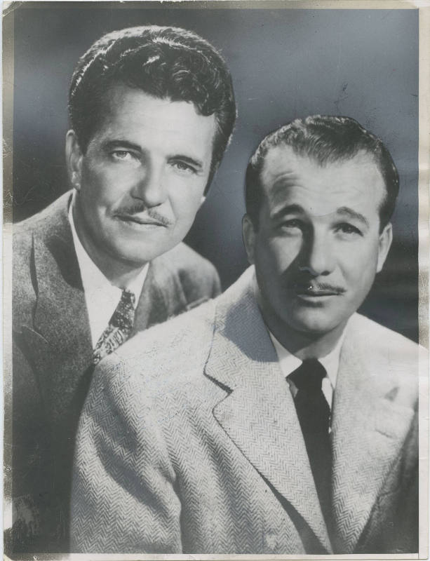 Press photograph of the retirement of Arkansas natives, Lum & Abner (Chester Lauck and Norris Goff). Professional head shot of the actors not in character.