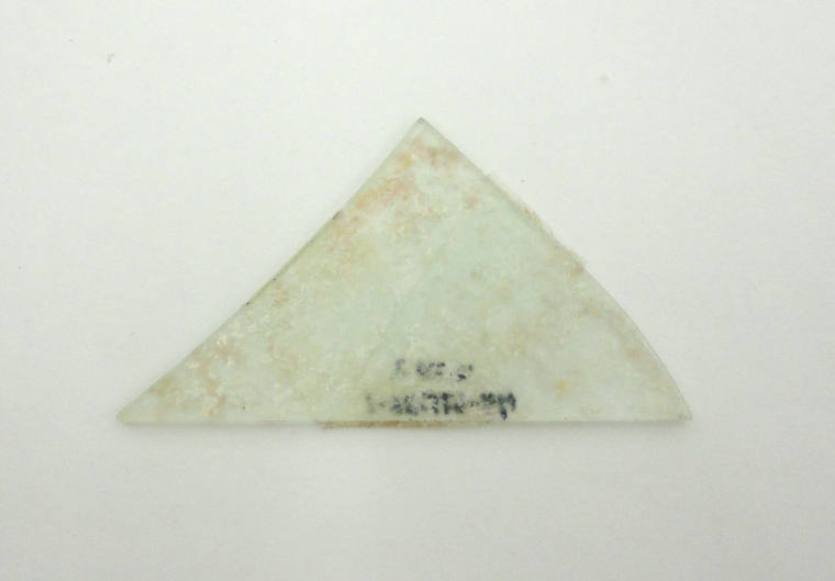 DescriptionPiece of glass found on the grounds of the Old State House Museum in 1979. From area west of site next to road (Site #3H096). Reference number: 79-675-26-1.Status
