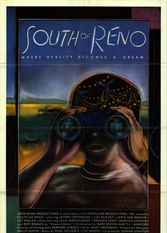 DescriptionLarge color poster from the movie "South of Reno," starring Arkansas native Lisa Blount. Dark colored background with white print. Image of a person with binoculars.Lisa Blount was born July 1, 1957 in Fayetteville, Arkansas, and grew up in Jacksonville, Arkansas. Blount was an actress and producer. She appeared in over 40 films and TV series. She was best known for her role in the 1982 film “An Officer and a Gentleman,” for which she was nominated for a Golden Globe Award. She also won an Academy Award as a producer for her 2001 film “The Accountant.” Blount died October 25, 2010, in Little Rock, Arkansas.