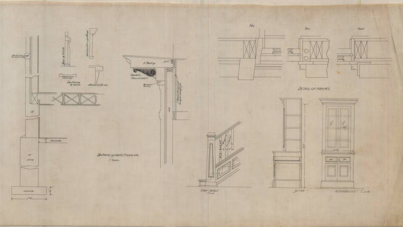 DescriptionCharles Thompson architectural drawing for M.C. Tombler at 226 Prospect in Hot Springs, Arkansas. Section of walls, floors, and details of frames.Status