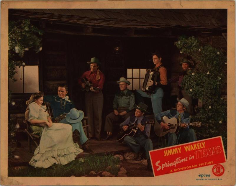 DescriptionA lobby card for the movie "Springtime in Texas," starring Mineola native Jimmy Wakely. James Clarence Wakeley, better known as Jimmy Wakely (he dropped the second "e" as a teenager), was born on February 16, 1914, in Mineola, Howard County, Arkansas. He was a country western singer and actor from the 1930s through the 1950s. Wakely appeared in radio, movies, and television. Wakely released 15 studio albums, which included his two most popular country singles, "One Has My Name (The Other Has My Heart)" and "I Love You So Much It Hurts," both in 1948. From 1949 to 1952, he appeared in a series of comic books published by DC Comics as "Hollywood's Sensational Cowboy Star." He appeared in over 65 films and TV episodes. Wakely died on September 23, 1982 in California.