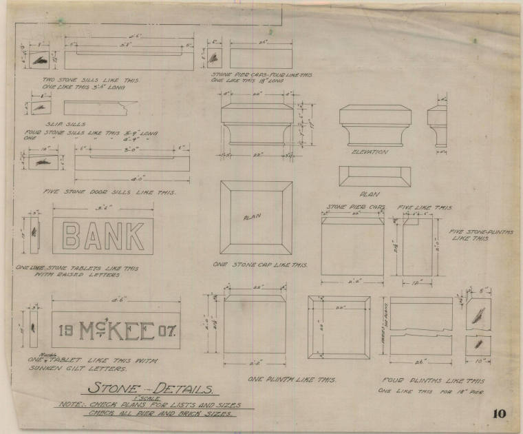 DescriptionCharles Thompson architectural drawing for the Charles McKee bank and store at Main and W. 3rd Street in Fordyce, Arkansas. Stone details.Status