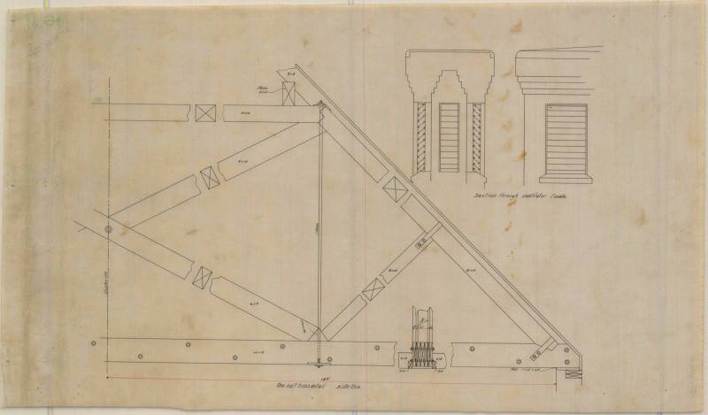 DescriptionCharles Thompson architectural drawing for the Saline County Courthouse in Benton, Arkansas. One half truss detail and section through ventilator.Status