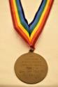 DescriptionA medal given to Sid McMath from the Vietnam Veterans of America. The medal itself is quite large and reads "Vietnam Veterans of America" on the front. The back has the words "VVA ARK. STATE DISTINGUISHED SERVICE MEDAL AWARDED TO GOV. SID MCMATH 1990" inscribed on it. The ribbon has 2 shades of blue, green, yellow, orange, and red bands.