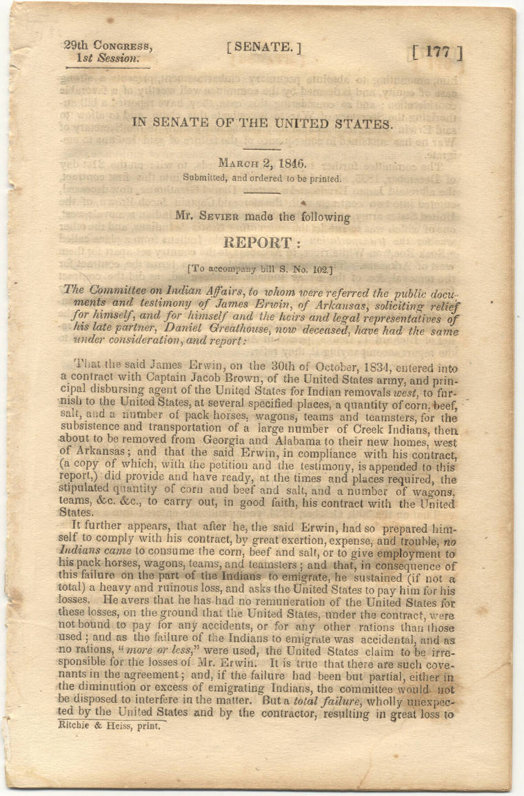 Report, Government - Mr. Sevier to the Committee on Indian Affairs