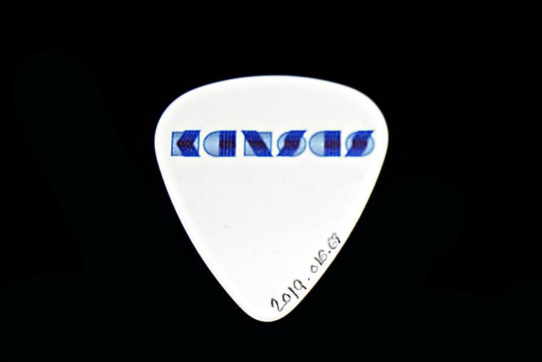 DescriptionKansas band member Davis Ragsdale's guitar pick emblazoned with his name and the band's logo. Ragsdale is the violinist with the band. The pick is white with blue lettering. The band played at the 2012 Arkansas State Fair performance.Status