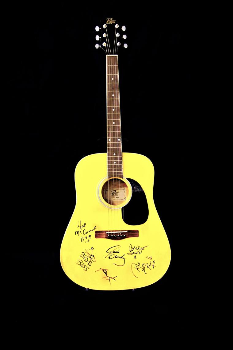 DescriptionA Rogue RD80 acoustic guitar autographed by Jim "Dandy" Mangrum, Ricky Lee Reynolds, Johnnie Bolen, George Hughen, and Hal McCormick members of Black Oak Arkansas. The guitar is part of the Old State House Museum, Barton Coliseum's Concert Collection.Status