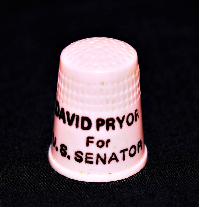 DescriptionA light pink sewing thimble for Senator David Pryor's U.S. Senator campaign.Status