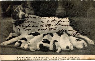 DescriptionA black and white postcard from the Second Arkansas State Fair held in Host Springs, Arkansas from October 3though 12, 1907. The postcard displays a photograph of a crowed Grand Stand at the Oak Lawn Race Track. It is postmarked September 24, 1907 Fouke, Arkansas. It was published by Chas, Cutter & Sons, Pubs, Hot Springs, Ark.Status