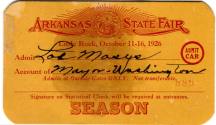DescriptionA season pass issued to Loe Masys for the 1926 Arkansas State Fair held in Little Rock. The pass allows admittance at only the outside gates and permits one car entrance.Status